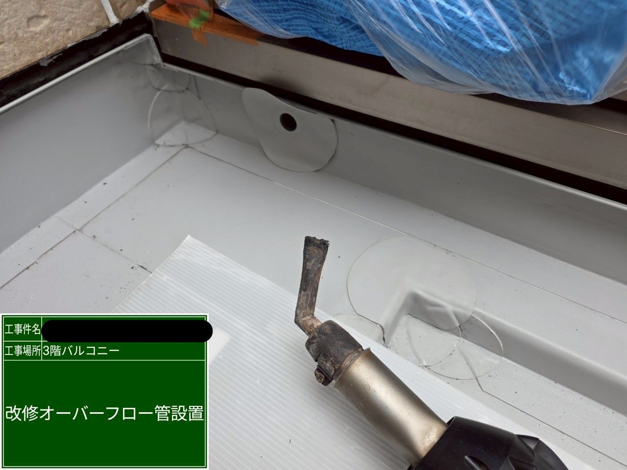 ・今回のお建物では、オーバーフロー(排水溢流管)も自社で製作・施工しています。