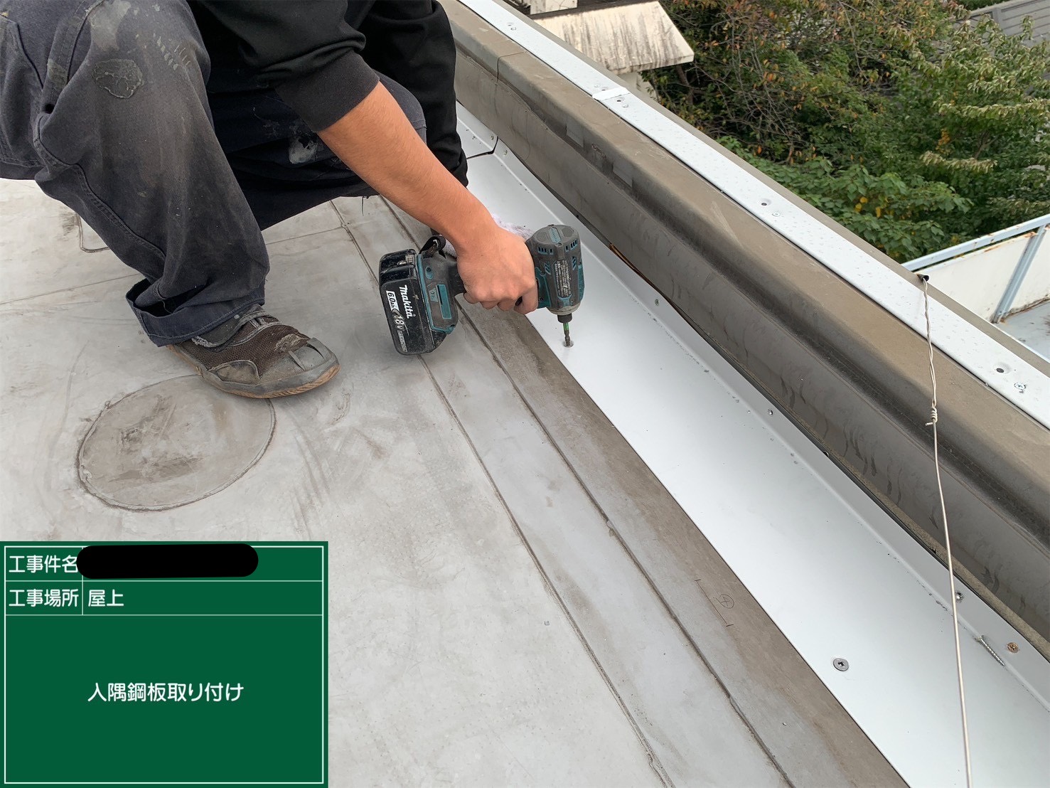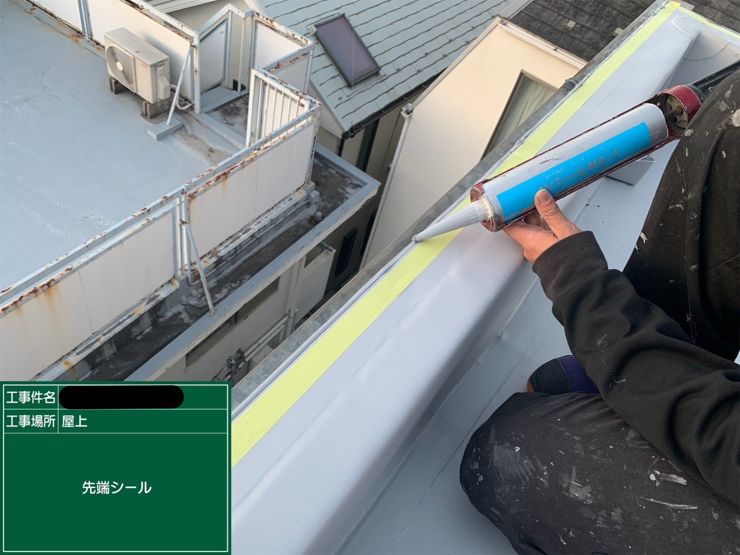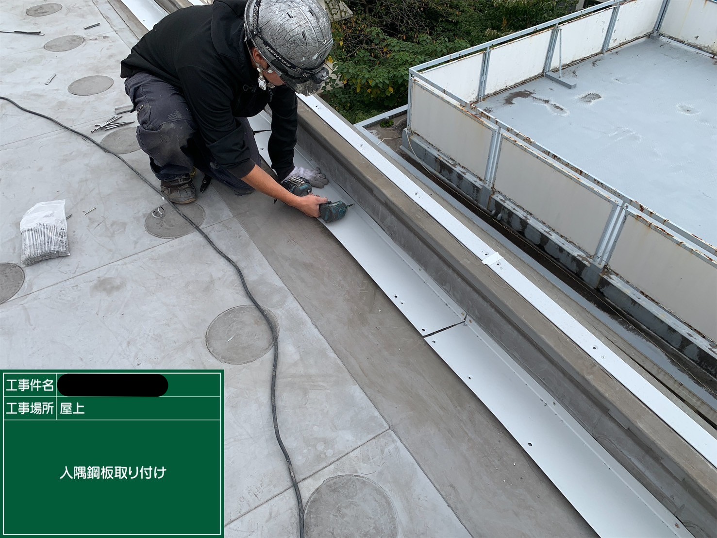 他社さんではこの脱着を避けがちですが、江戸ワークでは自社職人が笠木の脱着から復旧まで一貫対応できるため、塩ビシートと笠木の取り合い部分まで完全に施工することが可能です。