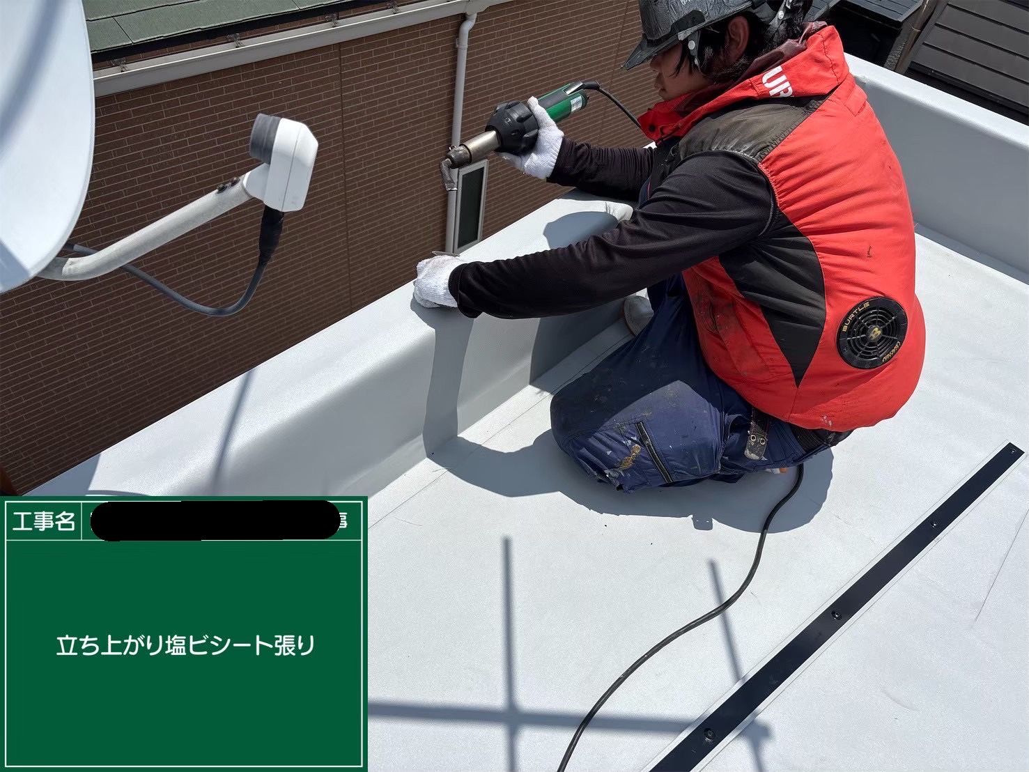 塩ビシート防水は、ウレタン防水のと違いトップコート塗り替え等がなくメンテナンスフリーで耐久性が高く、熱融着による強固な接合が可能なため、漏水リスクの低い防水工法ですが職人の腕が無ければその性能を最大限に発揮できないと私は思います。