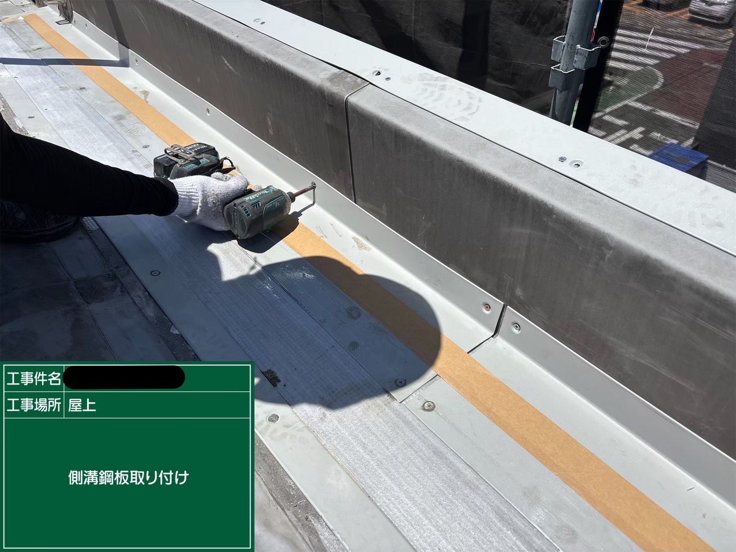 既製品に頼らず、お建物の形状や排水位置に合わせて最適なサイズ・角度で加工・取付を行うことで雨水の滞留を防ぎ、より確実な排水性能を実現しています。