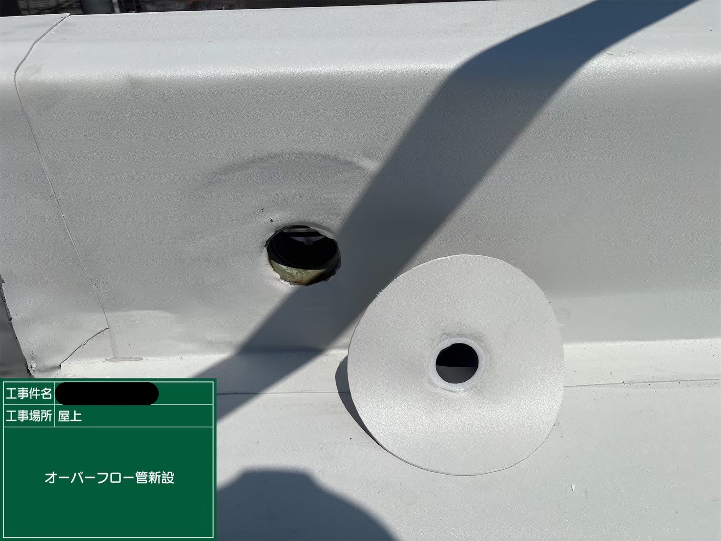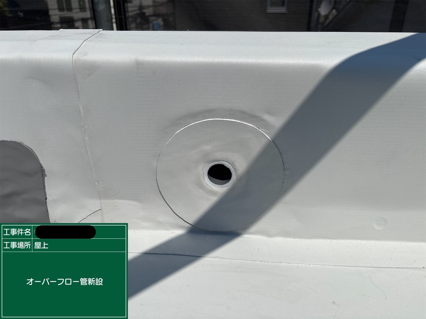 ・今回のお建物では、オーバーフロー(排水溢流管)も自社で製作・施工しています。