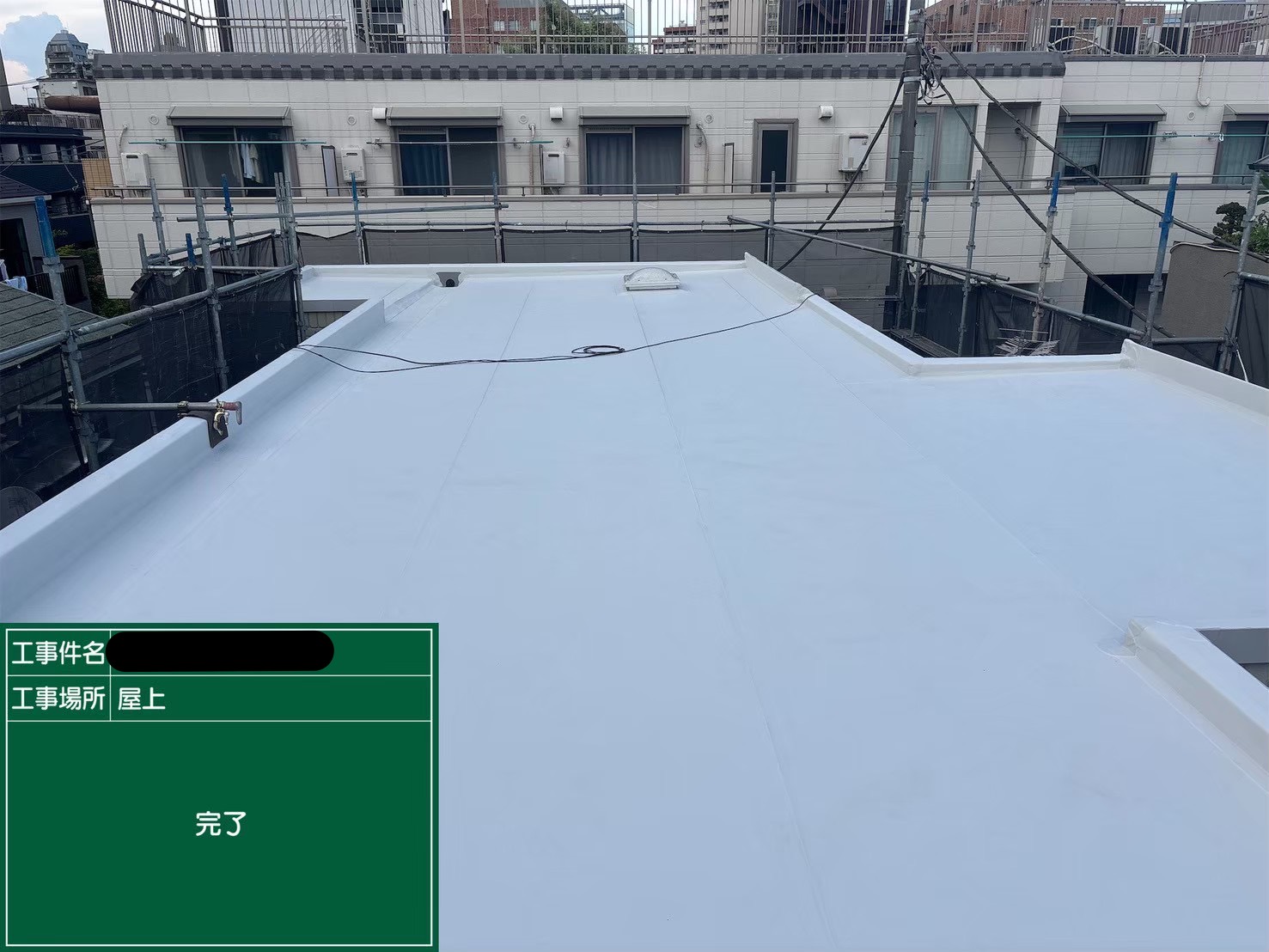 屋上全体が明るく清潔感のある印象になり、お客様からも「2階部分の室温が和らいだ、江戸ワークさんに依頼してよかった」と喜びの声をいたたきました。
