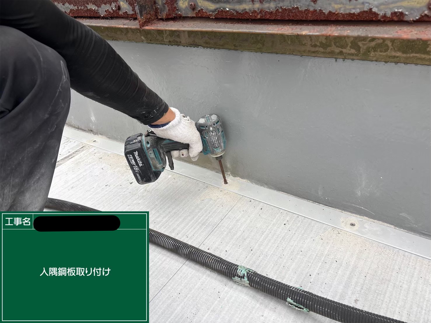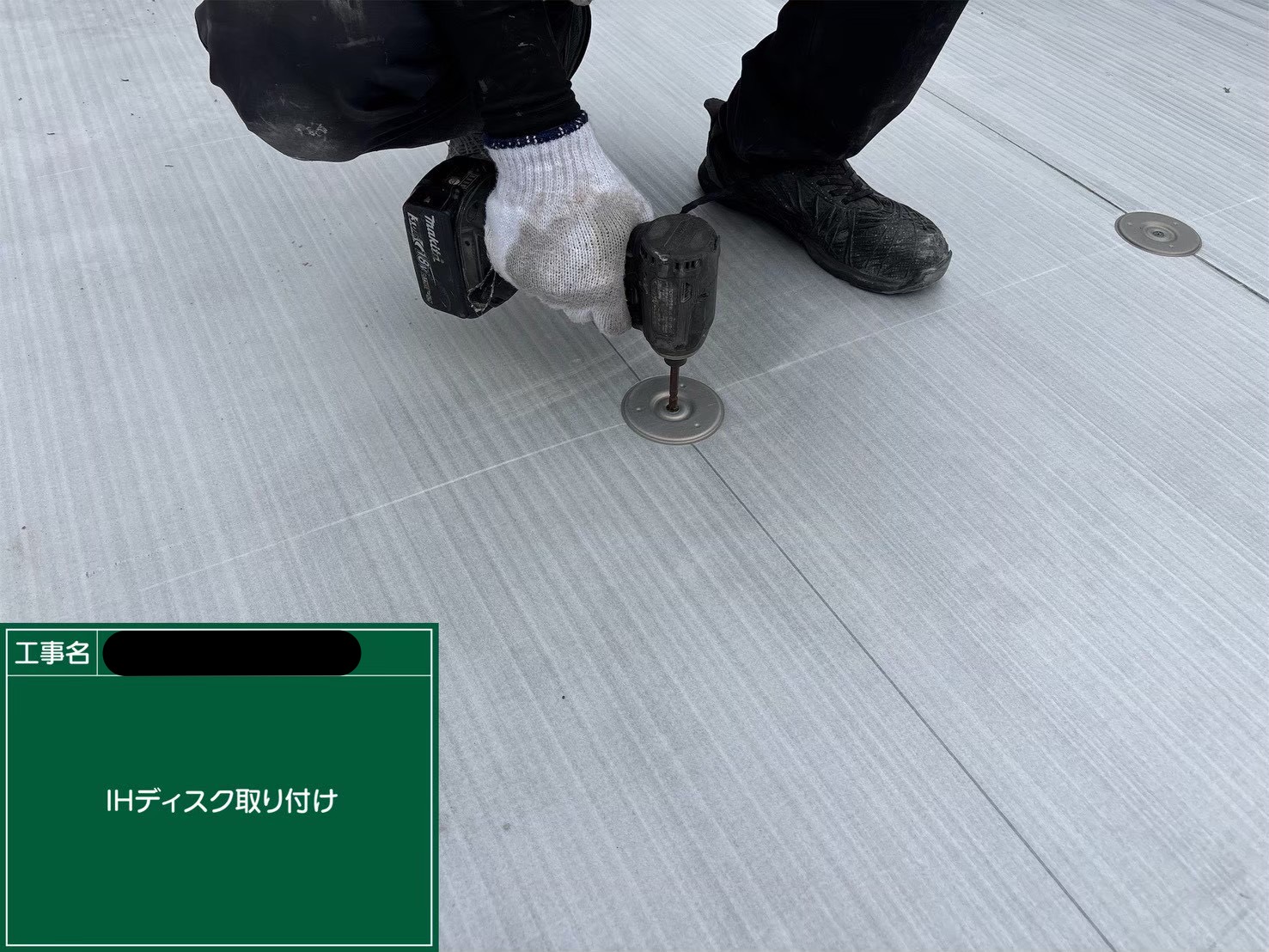 ・アーキヤマデ製の鋼板を使用します。ビスの打ち忘れがないようしっかりと確実にビスで固定していきます。