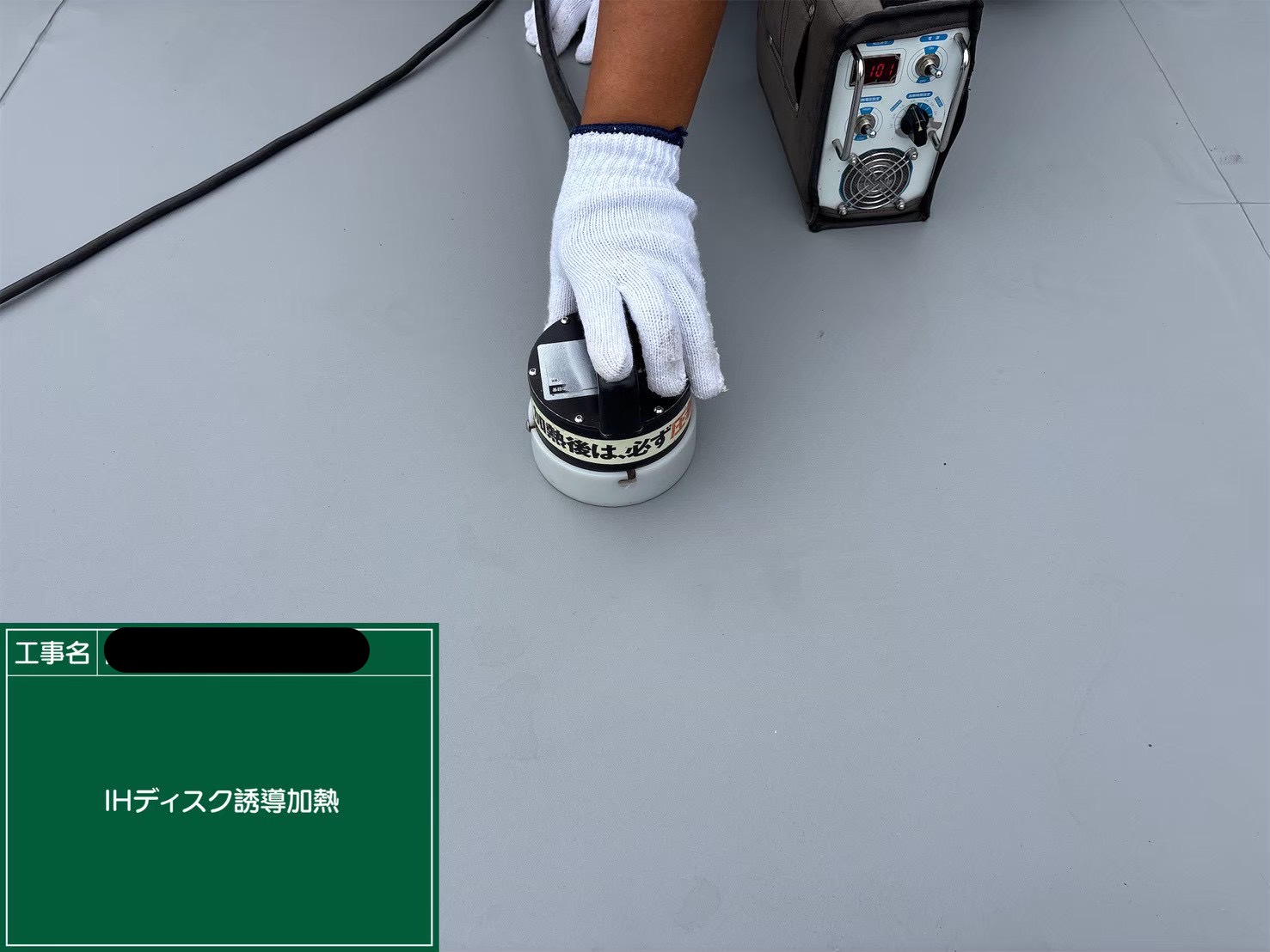 ・IHディスクを加熱し確実に塩ビシートを固定。