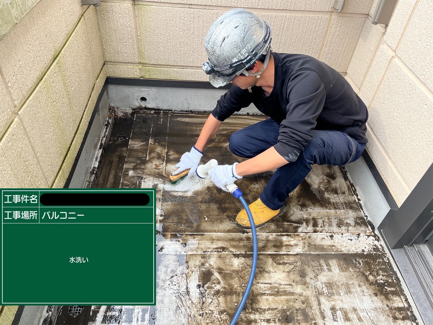 ・絶縁シートも丁寧に張り込んでいきます。絶縁シートは、既存の防水層と新たな塩ビシート防水層が直接接触しないようにするために敷き込みます。