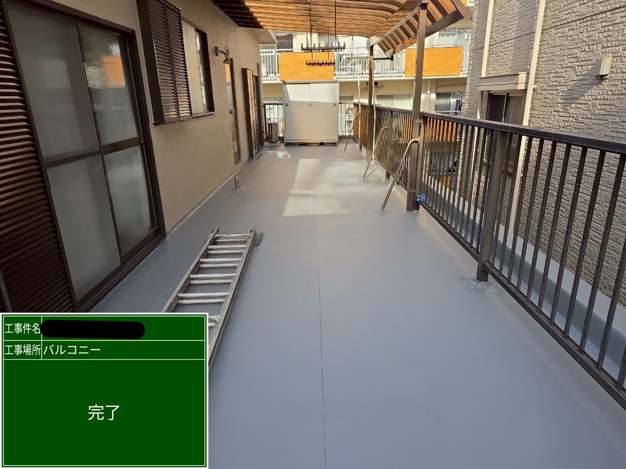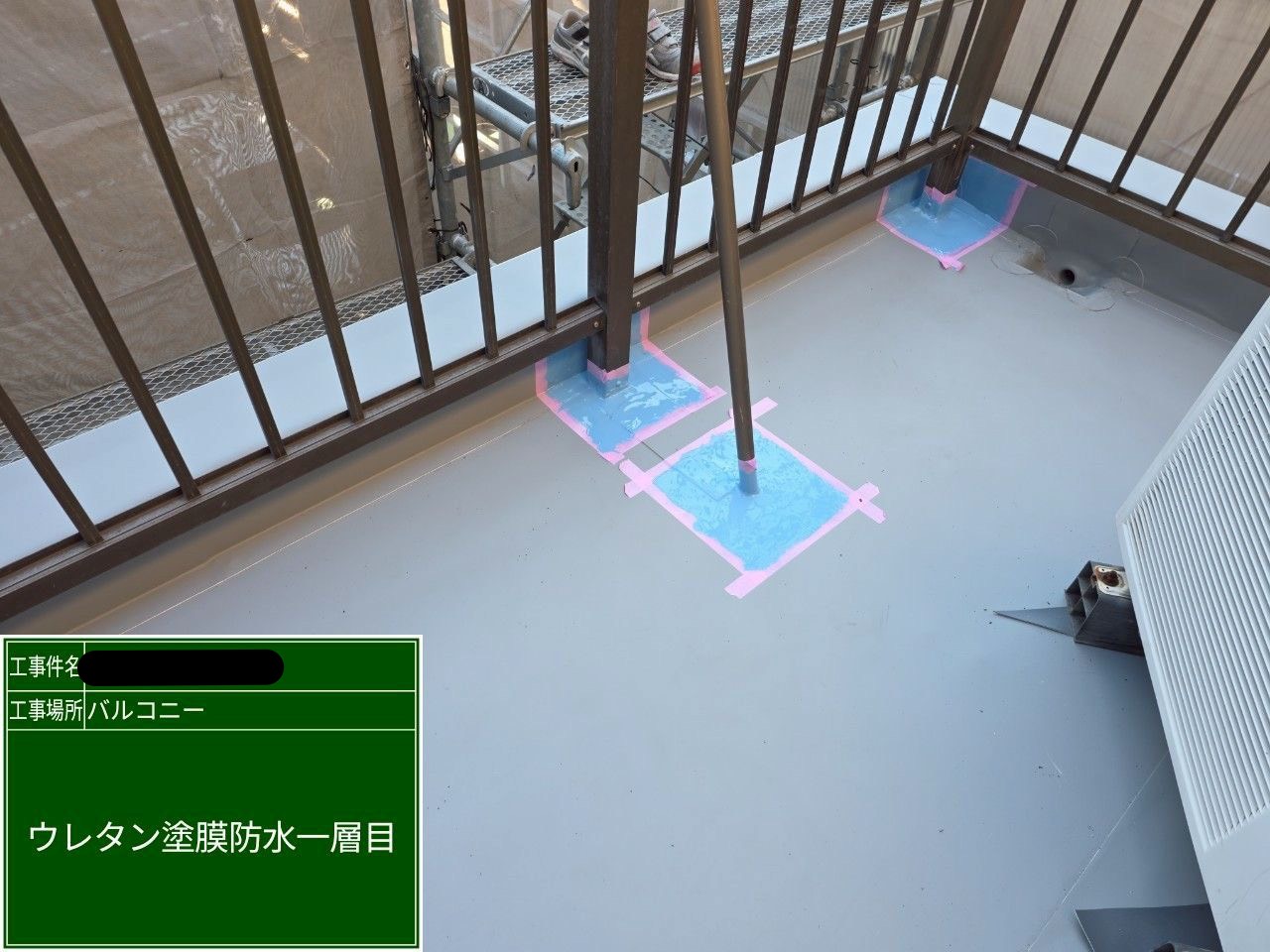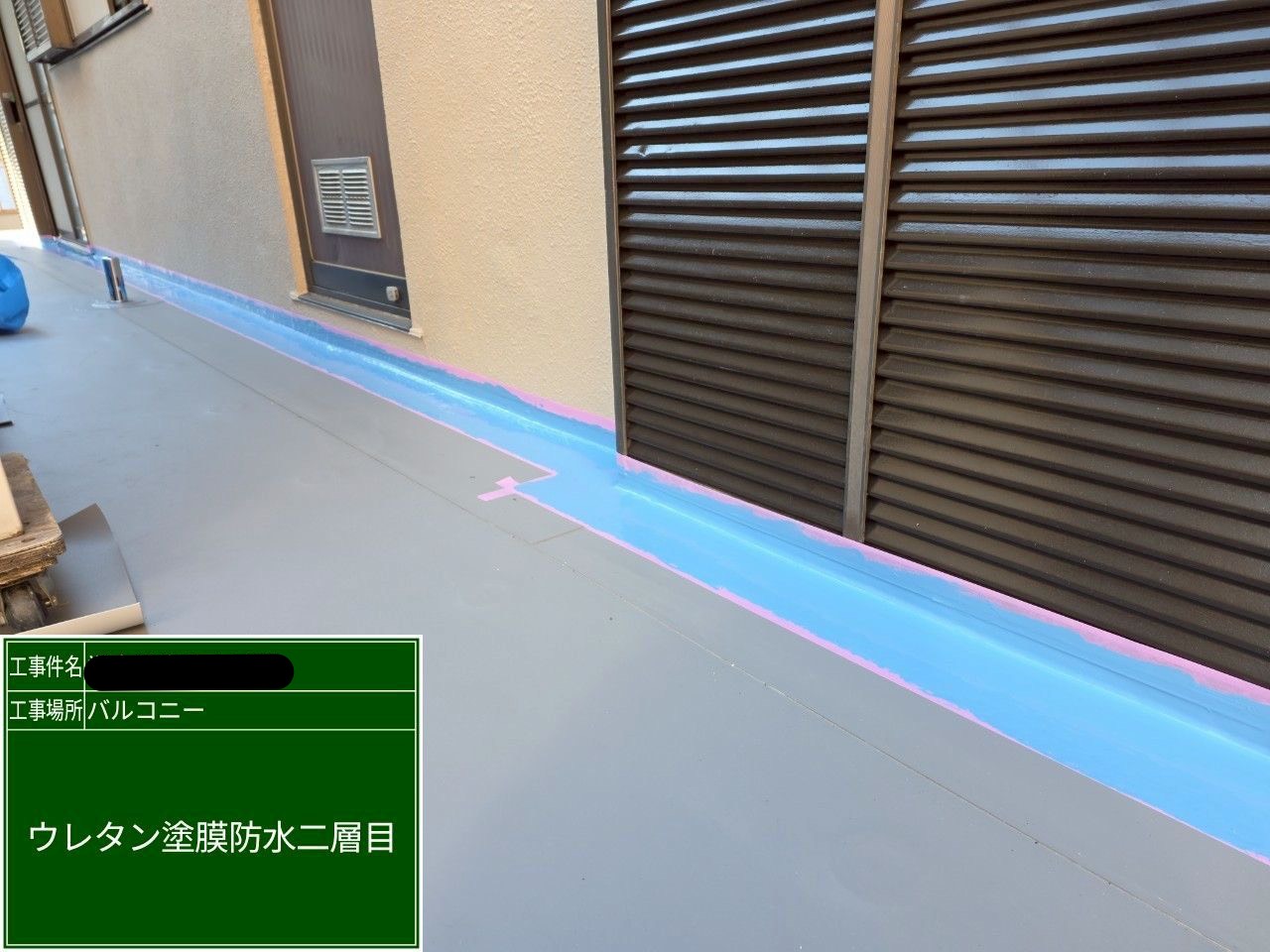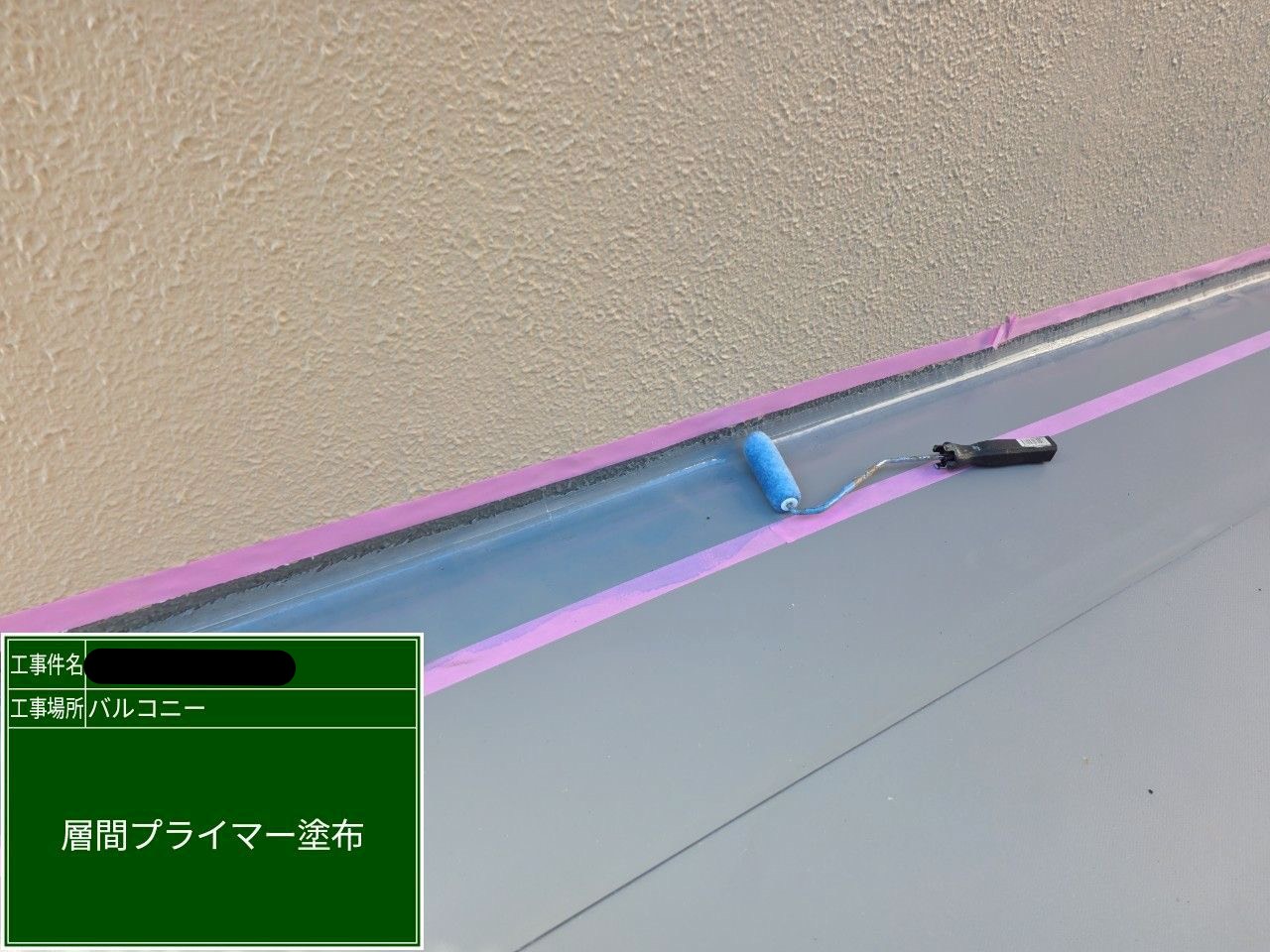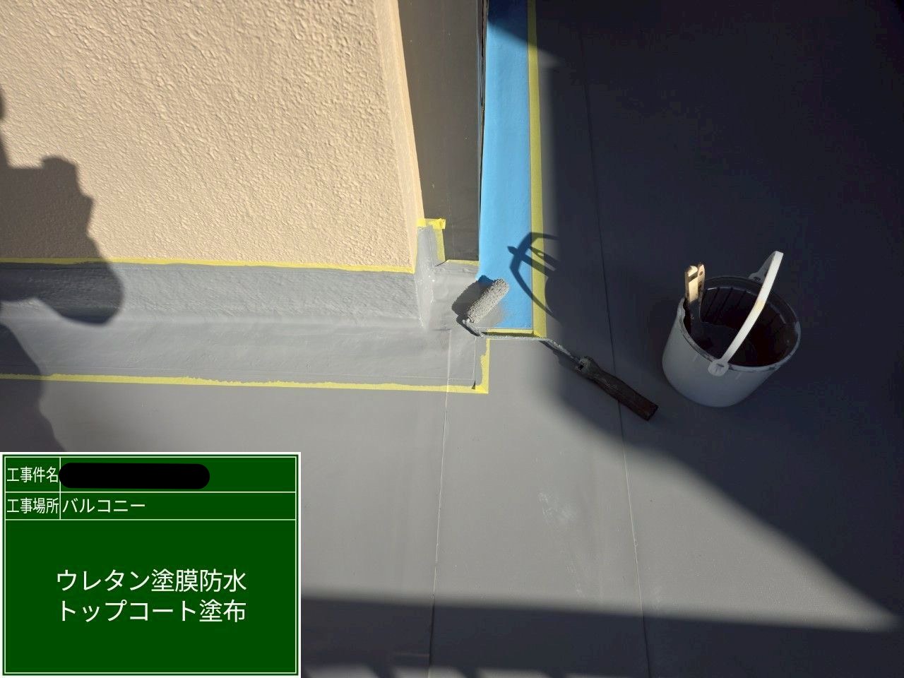 •手摺りの複雑な部分や、立ち上がり部を層間プライマー、一層目、二層目、トップコートを均等に塗布し防水性能を高めます。
