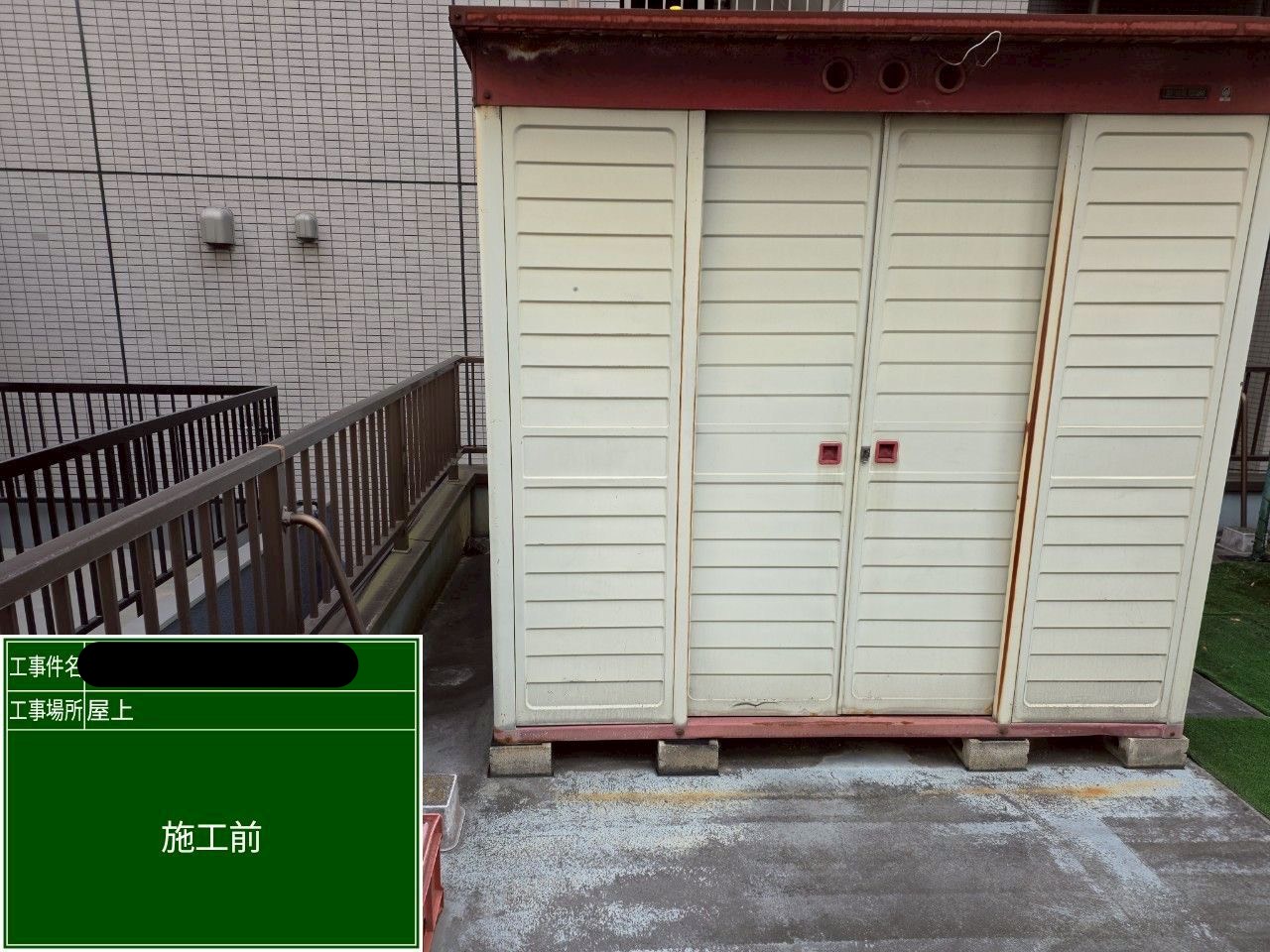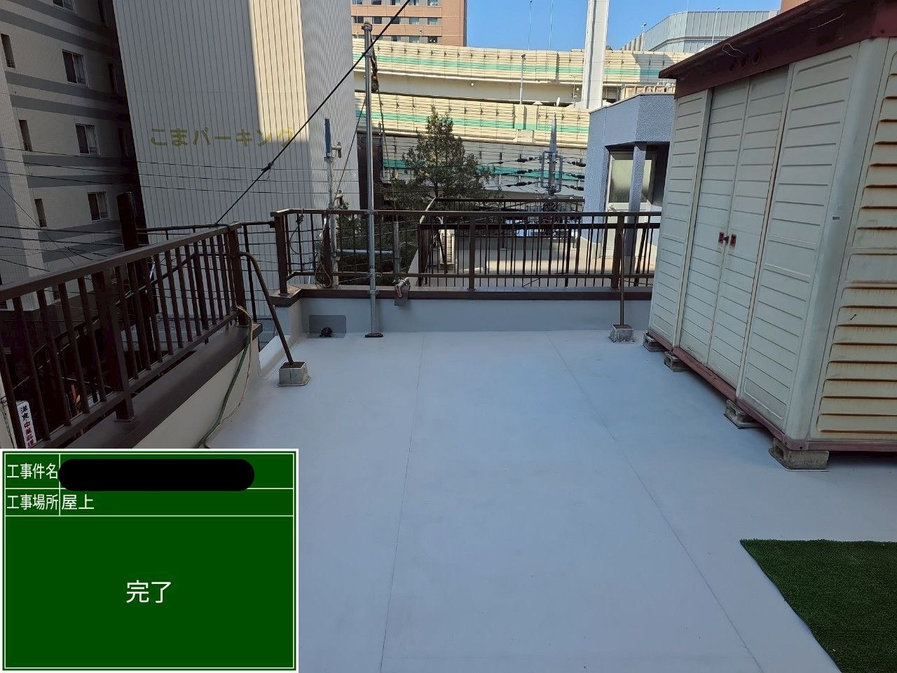 また、「物置があるから全面改修はできない」と言われるケースもありますが、弊社では適切な移動・養生を行い屋上全体をしっかりと改修いたします。