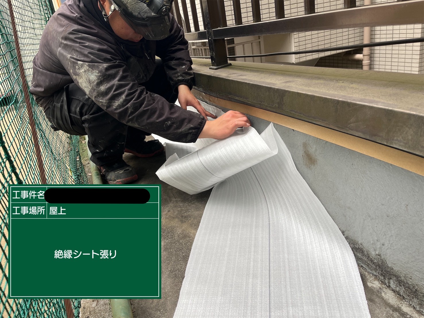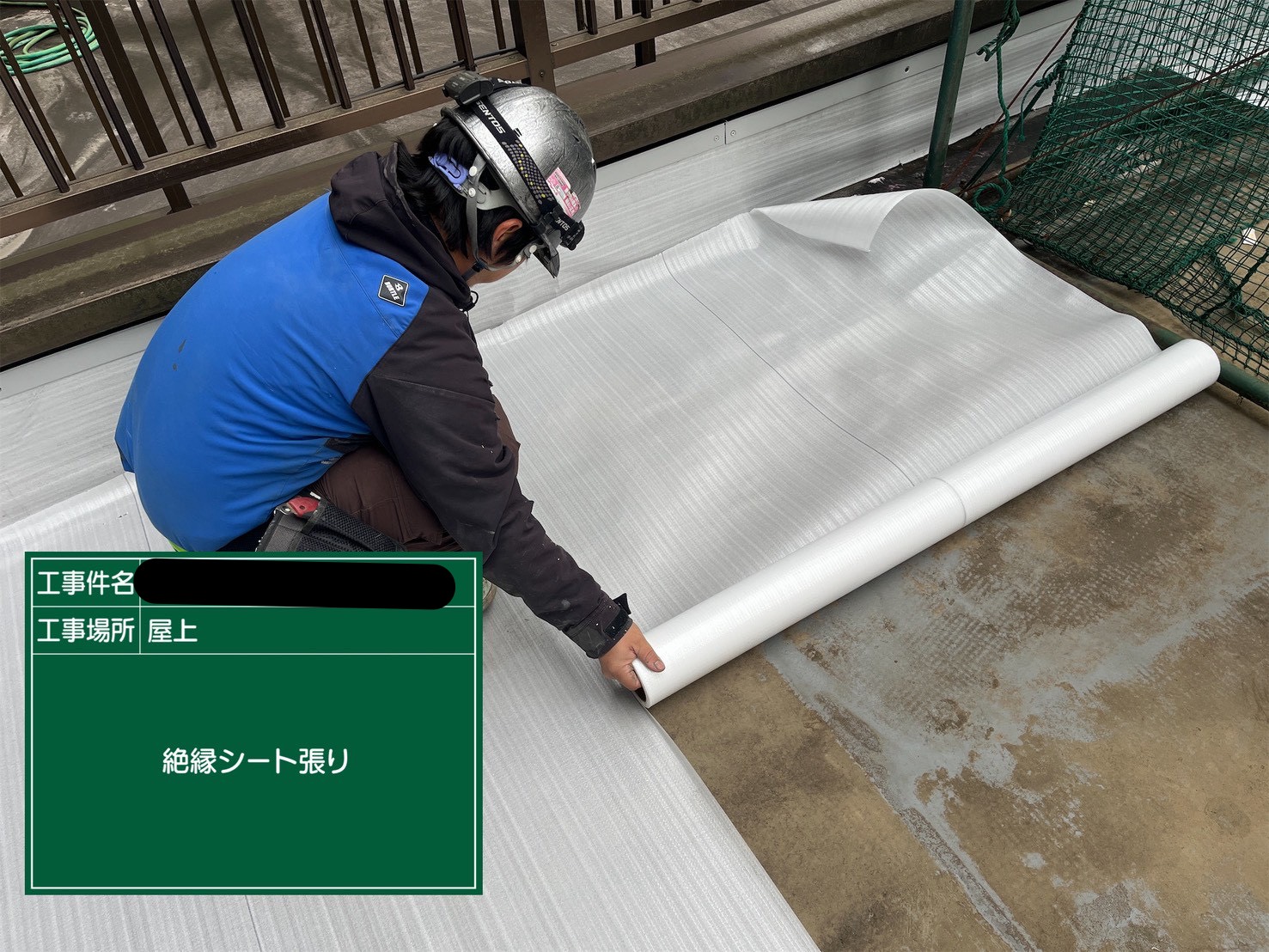 ・既存防水の上に絶縁シートを敷設し、下地との縁を切った状態で施工を行っていきます。