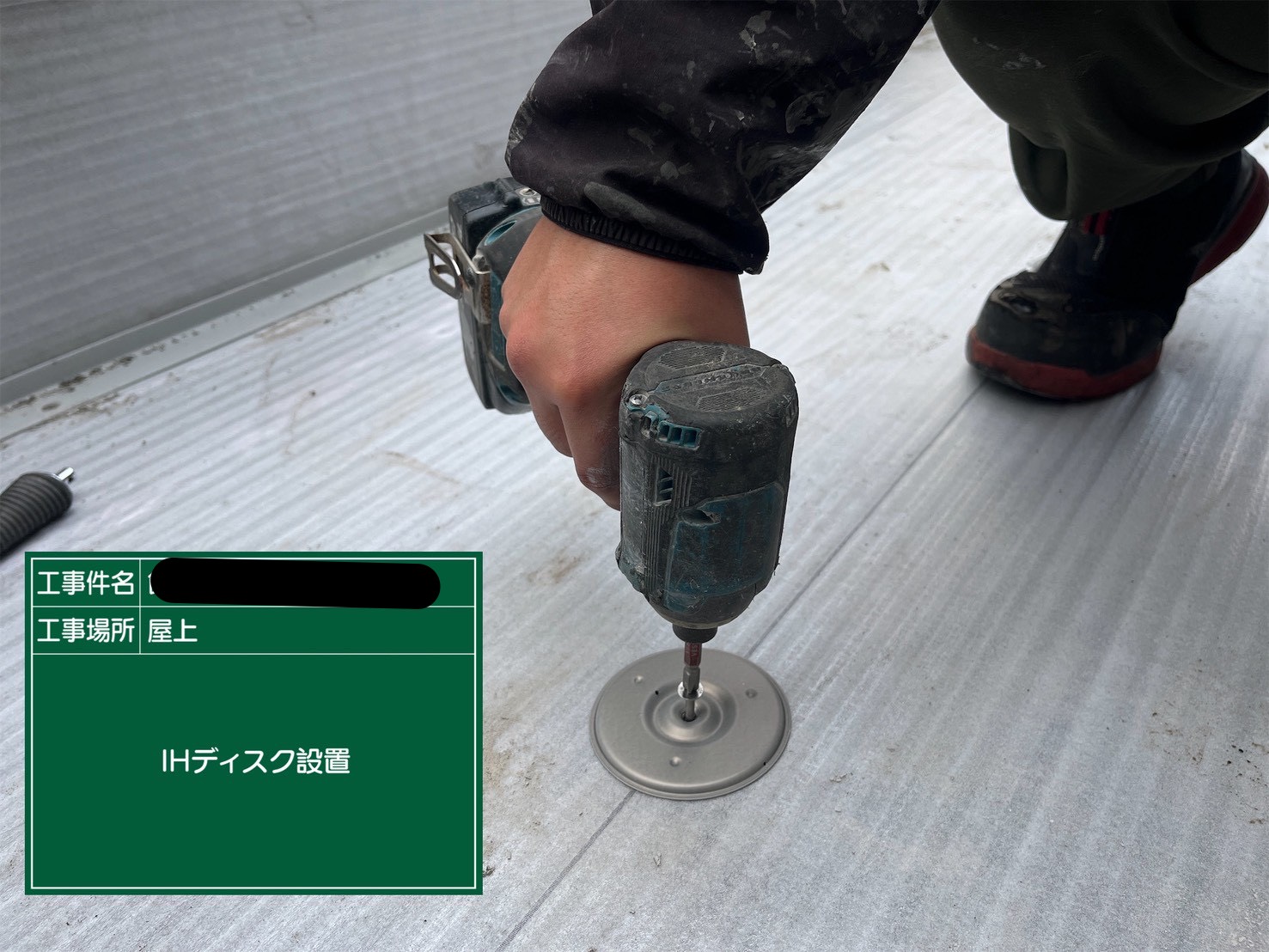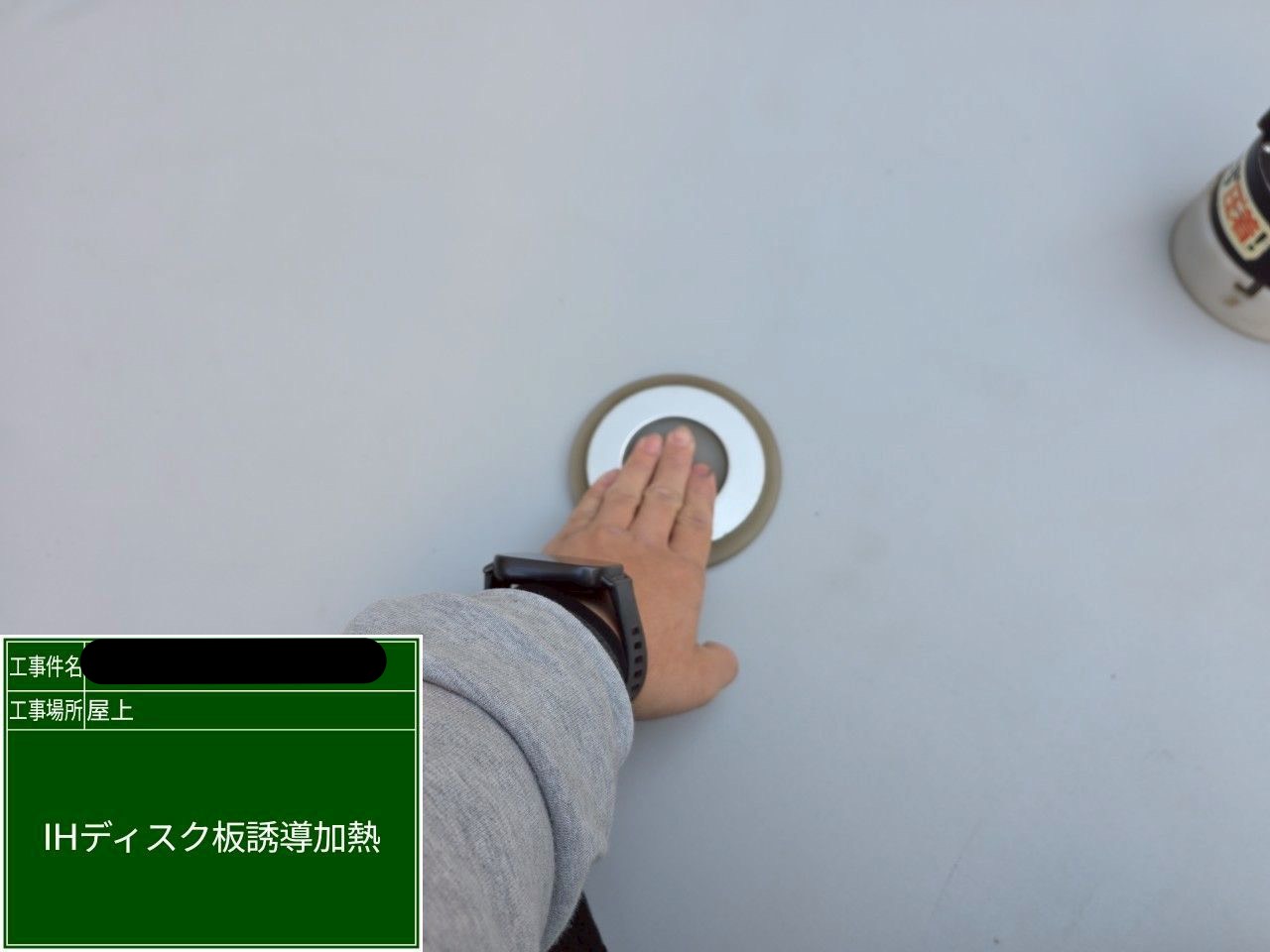 ・設置したIHディスクを専用機で加熱し、塩ビシートとディスクを確実に融着させています。