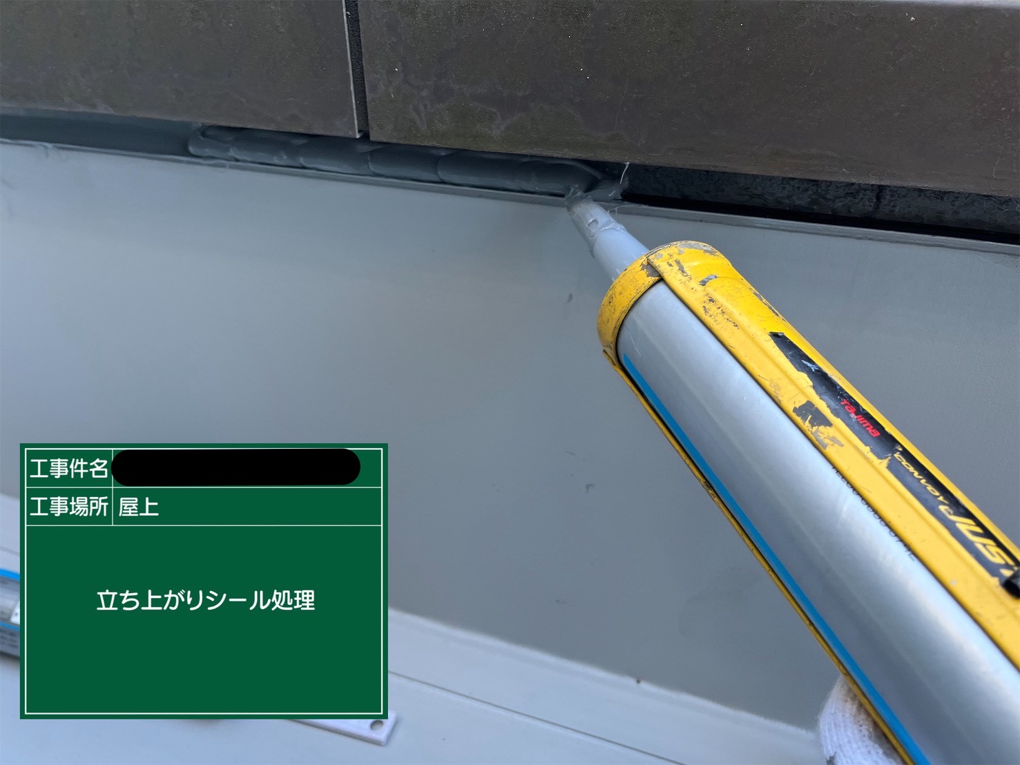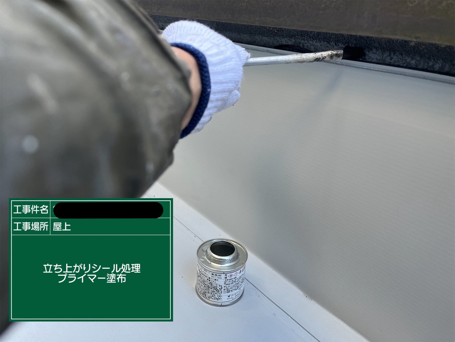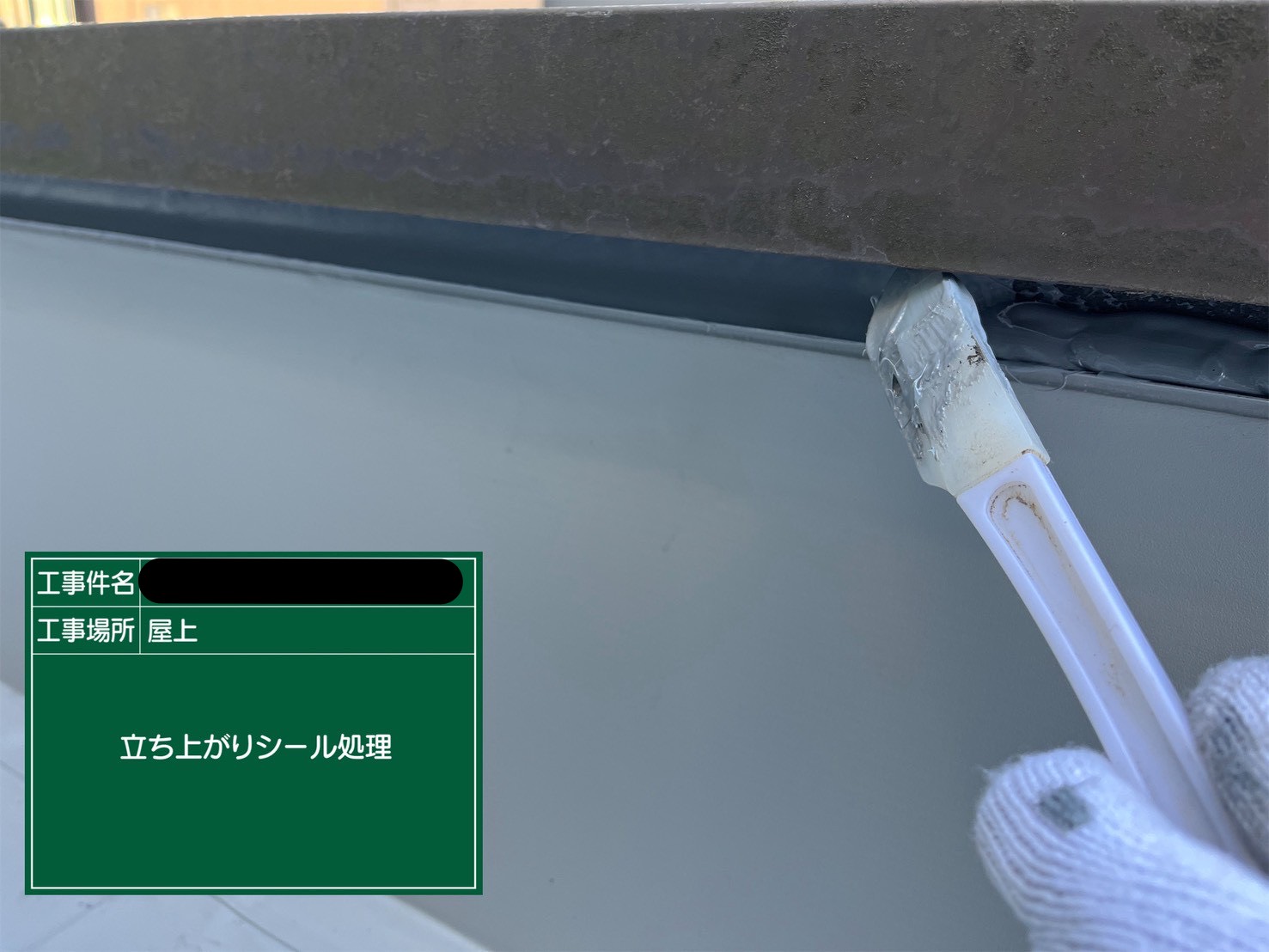 端末は水のまわりやすい箇所です。だからこそ手間を省かずしっかりとプライマー塗布、ヘラでしっかり押さえ未着させ確実に処理することを徹底しています。